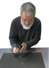 en effet qu’en fond de toile se superposent a l’envi les signes calligraphiques