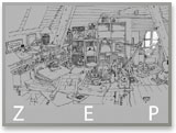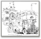 Il fait trop beau pour ne pas sortir profiter du printemps, le car Touche attend. Place Cornavin, Zep arrive le premier, comme pour se réserver le temps de fixer pour nous l’image du vieux bus brinquebalant : nous voilà d’emblée dans l’imaginaire et la poésie…dans l’idée de l’aventure. En passant par la Treille où les arbres feuillus nous prodiguent un bonheur d’ombre, nous saluons le vieux chêne qui ploie et dont ce qui semble la souffrance a marqué la jeunesse de l’artiste. Vite, il nous entraîne à travers le passage de la Tour - la ville lui a livré tous ses secrets…- vers la rue Jean Calvin où la décrépitude de la maison du grand homme lui confère son charmant petit caractère romantique. Grimpons encore jusque la terrasse Agrippa d’Aubigné, où, tout essoufflés nous pourrons admirer l’architecture du temple de la Madeleine : les verticales s’affrontent au jet d’eau, qui au loin jaillit des eaux calmes du lac, les toitures s’imbriquent et se superposent dans un jeu géométrique harmonieusement équilibré. Le lac, à la jetée des Pâquis, propice à la méditation, offre le refuge de la nature et propose l’évasion…